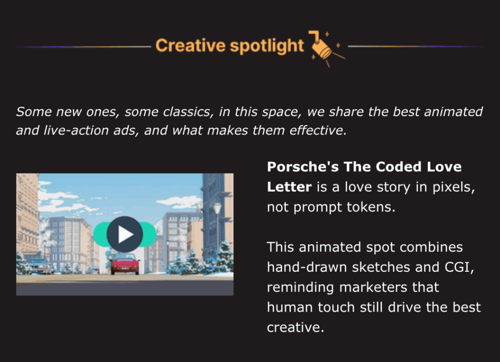 ☑ Creative Spotlight: Deep dives into campaigns we can’t stop watching (and why they work)